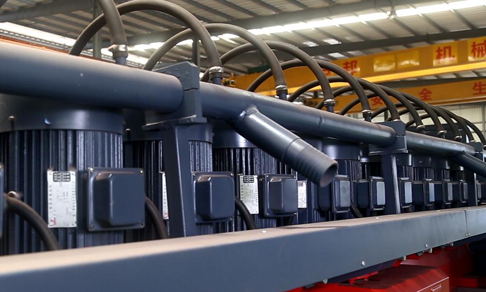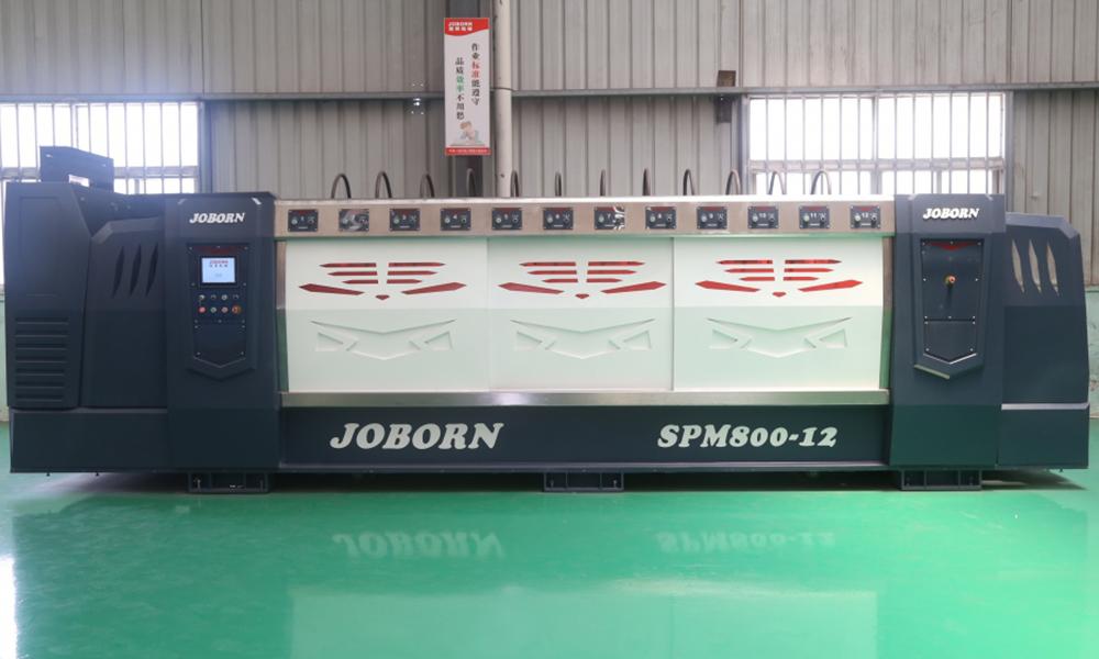 Данный крупный, полностью автоматизированный шлифовально-полировочный станок подходит для обработки поверхностей мрамора шириной 0.8-2.2м. По желанию клиента, станок может быть оснащён 12-24 полирующими головками и 12-24 основными двигателями с 15кВт мощности. Подобная вариативность конфигураций позволила нашему шлифовально-полировочному станку найти применение на крупных камнеобрабатывающих предприятиях.
