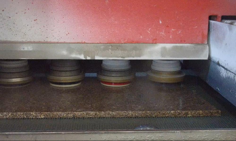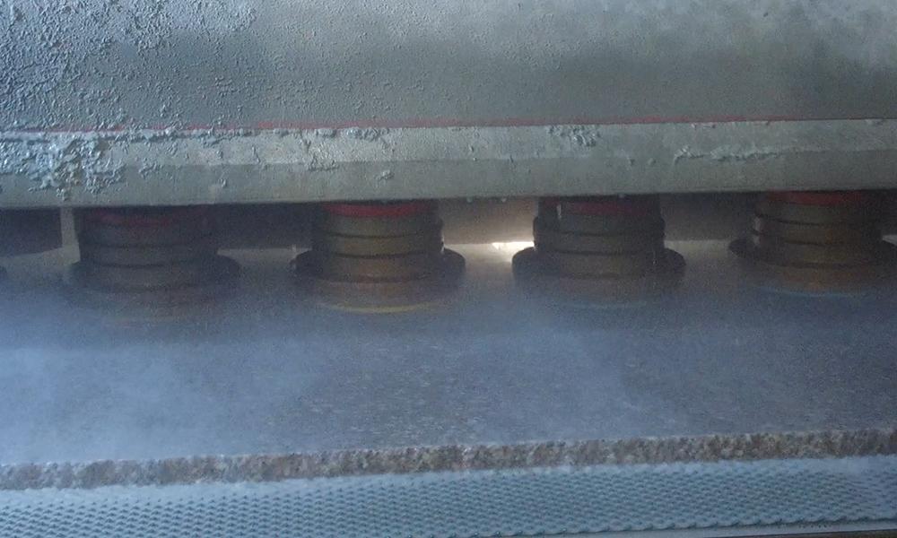 Шлифовальная головка имеет функцию запоминания форм, позволяющую автоматически избегать неразрезанных частей. Машина оснащена износостойкой конвейерной лентой, которая препятствует скольжению камня